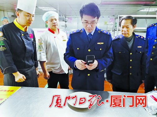 本报讯 (文/图 记者 陈泥 通讯员 张薇 张善团) 昨日上午,市场监督管理部门市、区、所执法人员三级联动,对环岛路一带承接“尾牙宴”、“年夜饭”、旅游团餐的餐饮服务单位突击检查。