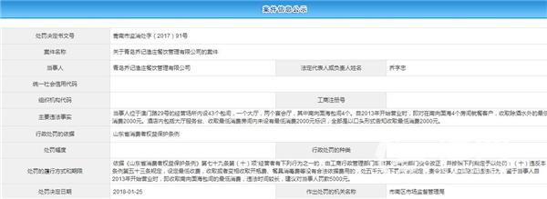 市南区市场监督管理局针对乔记渔庄长期的违规行为,依据《山东省消费者权益保护条例》第七十九条的规定,于2018年1月25日作出行政处罚决定,责令乔记渔庄立即改正违法行为,并处以5000元罚款。
