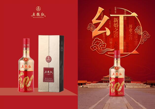 五粮红内涵上承载红文化,象征尊贵、喜庆、吉祥。 其产品包装是中国设计大师万宇老师的扛鼎之作,瓶身丝带元素,草书“红”字,如同一条飞舞的巨龙,象征着中华民族的腾飞;丝带元素,也是五粮液首个英文字母“W” 的变形表达。丝带内蕴藏着代表五粮液精华的古法五粮酿酒图,寓意源于五粮酿造,正宗血统。瓶子整体色调金红相间,金色代表富贵,红色代表喜庆,蕴含中国喜庆文化的精髓,也寓意着富贵吉祥,大吉大利。盒子采用金红镶嵌,双开门式盒型,寓意五粮红一开,喜事自然来。