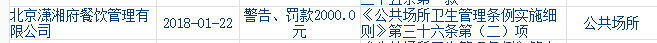 北京潇湘府餐饮管理有限公司违反卫生管理相关规定被罚款