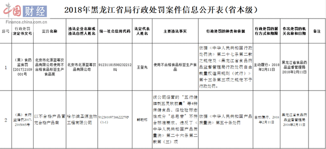 2月23日,黑龙江食药监局公开了一则行政处罚案件信息。