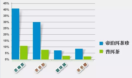 我们知道普洱茶的健康功效主要源于其活性成分:茶多糖、咖啡碱、茶多酚、茶褐素的协同作用,相同质量的帝泊洱普洱茶珍其活性成分含量是普洱茶的 4倍左右。