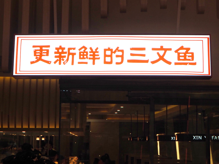 品牌视觉设计也是新一番的一大亮点。在长沙保利MALL,新一番橘黄色的招牌格外抢眼,辨识度很高。这种源于人工养殖三文鱼的颜色让顾客倍感亲切,富有记忆点。区别创意团队还为新一番设计了年轻的养殖专家作为品牌IP,潜在地“教育”市场及消费者,好的三文鱼都是养殖的,强化新一番“更新鲜的三文鱼”的品牌定位。