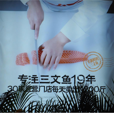 延续三文鱼寿司的品牌定位,新一番在三文鱼上“大做文章”。新一番的熟客惊讶地发现,门店大变样了。首先,三文鱼被放在了显眼的位置上。而且门店还开设了料理台,专业厨师现场料理三文鱼。除了空间设计上的变化外,新一番还打通了三文鱼的运输环节,提升了流转速度,使其从源头上更新鲜。