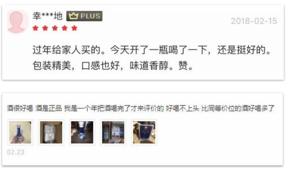 除了评分,消费者的五星好评也是直接表达了对洋河实打实的喜欢。