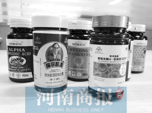 河南商报记者在陈宏轩家里看到,他买的保健品主要是在老年人中人气很高的“欧米伽3”,还有“禾信维康”牌“巴西蜂胶”、“鲨鱼软骨素”、“紫苏油”、“复合益生菌”等产品。其中,仅“欧米伽3”就有“展望生命牌欧米伽3脂肪酸胶囊”、“欧米伽叁利诺龙牌α-亚麻酸软胶囊”等品牌。