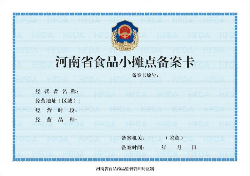 一、河南省食品药品监督管理局负责制定《河南省食品小摊点备案卡》的式样(见附件)。
