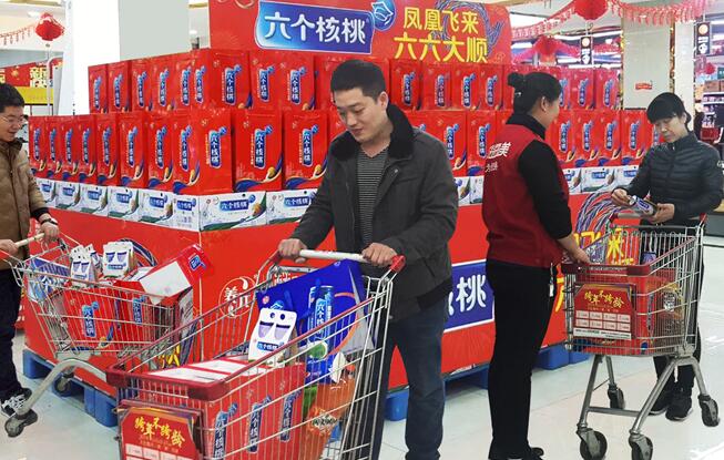 据记者春节前夕从超市现场看到的情况,春节筹备年货时成箱购买六个核桃的消费者不在少数。多位经销商均向记者表示道:六个核桃春节季销售情况稳健如常,消费者非常认可六个核桃的品牌和产品,春节走亲送礼的首选肯定少不了六个核桃,所以今年走量走得相对可观。