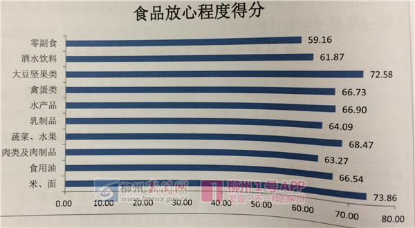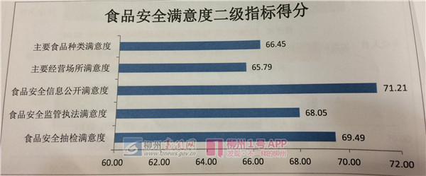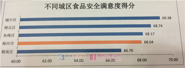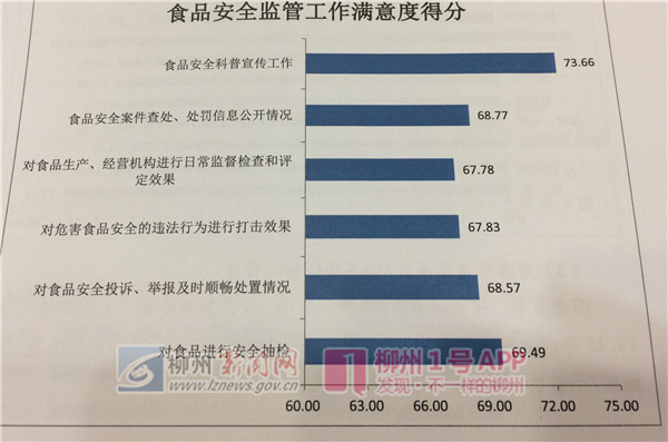 记者从会上获悉,去年12月23日至今年1月8日,自治区委托第三方采用电话调查、实地调查相结合的方式,对柳州进行了群众食品安全满意度调查,调查对象主要为市民和食品行业从业人员,共1920人。调查结果显示,2017年群众从总体上对食品安全满意度评价为68.85分,距离自治区标准70分以上还差一定距离。