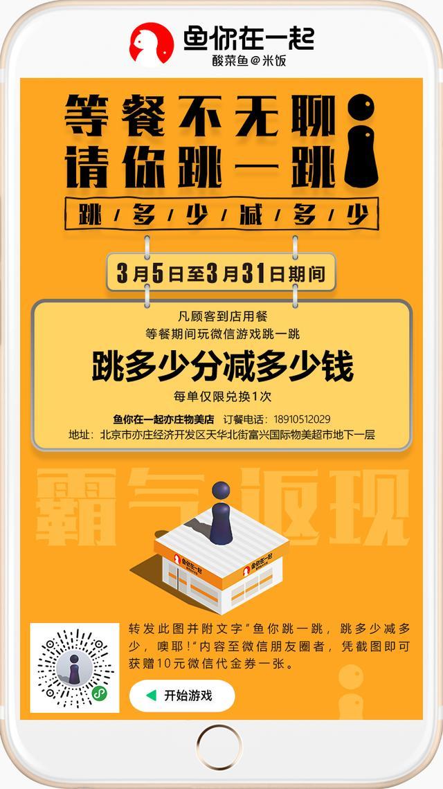 “跳一跳”火了,“鱼你在一起”酸菜鱼@米饭快餐的借势营销也火了!作为餐饮人的你,是否学会了一点什么呢?