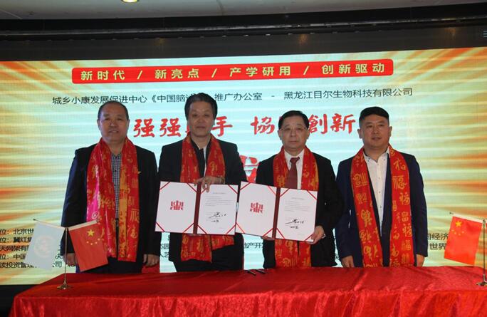 黑龙江省目尔生物科技有限公司董事长纪雨浓与城乡小康发展促进中心《中国脑计划》推广办公室主任李浩然现场签署了合作协议