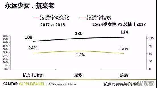数据还显示,正值芳华的15-24岁女性们对抗初老的意识更高,区别于我们老阿姨的“保温杯+枸杞+防脱”佛系护肤方法,少女们早早就开始了“精华+抗衰老+防晒”的高级进阶。回想一下我们这些老阿姨什么时候开始用上的第一瓶眼霜,第一瓶精华?不禁感慨我们不仅钱没她们多,连保养意识都滞后了。