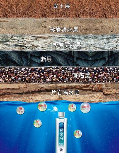 汤泉谷天然矿泉水取自于地下121米的混合花岗岩裂隙,是低钠、低矿化度、重碳酸钙的偏硅酸型矿泉水,富含软体黄金偏硅酸,其含量高出国家标准近一倍,拥有优于普通矿泉水的柔韧特质,更是让汤泉谷矿泉水贴上了“珍贵稀有、优质天然”的标签。