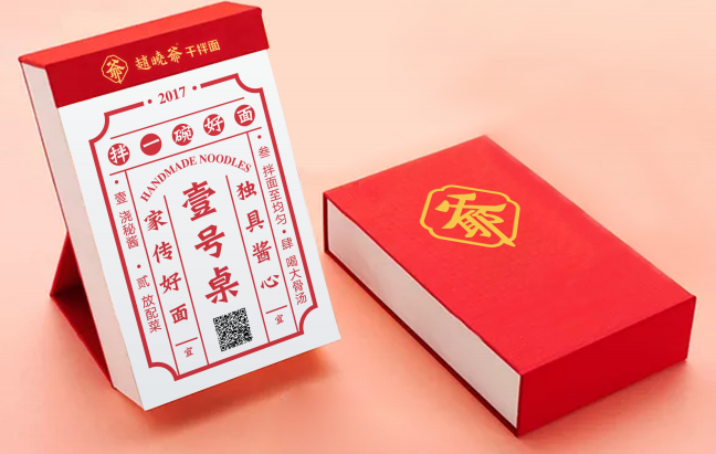 品牌定位固然重要,好的品牌视觉设计会为品牌锦上添花。区别品牌针对赵晓爷干拌面采取颜色占位策略,选用了红色和蓝色作为品牌颜色,在潜移默化中改变消费者的固有认知,从而转化为品牌的“符号记忆”。区别品牌把颜色应用于门头效果、台号牌、酱料包装、就餐流程、人物海报、品牌海报、菜品海报多处,于细节处打造品牌的记忆度。