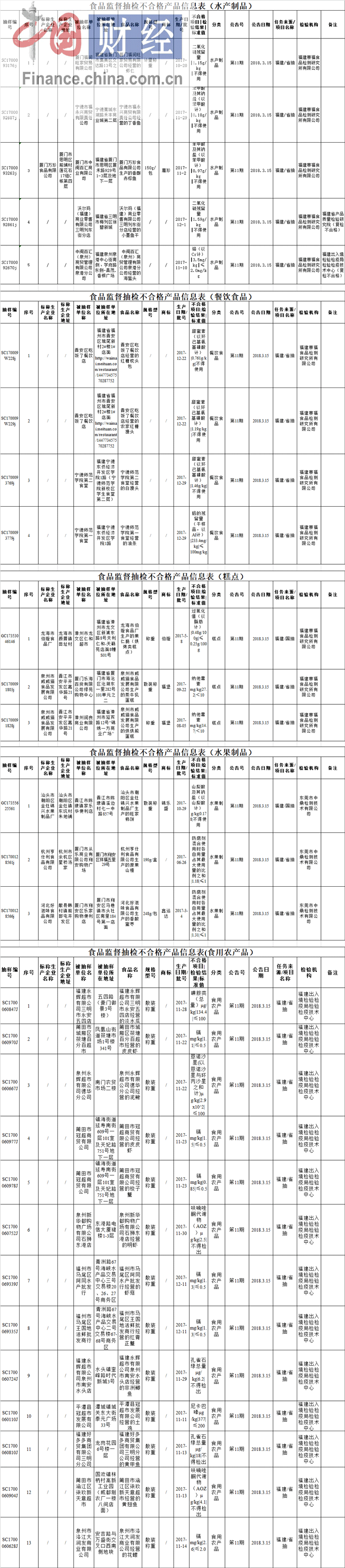 3月15日,福建省食药监局发布了一则公告。本次公告的监督抽检信息涉及6大类食品,包括:水产制品、糖果制品、食用农产品、糕点、餐饮食品和水果制品,共抽检528批次,其中合格500批次,不合格28批次。