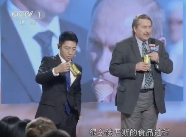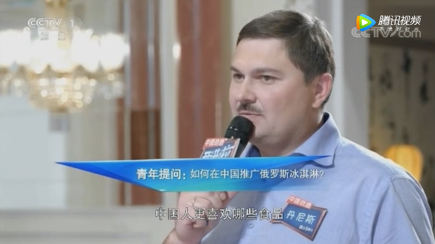 节目中,作为本期《开讲啦》的主讲嘉宾,尤里教授先是对主持人小撒(撒贝宁)送上中文版的《大国之翼:“一带一路”西行漫记》表示感谢。在接下来的莫斯科当地青年代表发言环节中,俄罗斯联合利华代表丹尼斯通过讲述自家冰淇淋在中国举办的G20峰会上因为俄罗斯总统普京以国礼级别赠予中国国家主席习近平和其他国家领导人而引发了巨大的品牌轰动。丹尼斯希冀中国这几年“一带一路”构想,让这款在俄罗斯早已家喻户晓的冰淇淋可以让中国亿万消费者也能一品独特而纯正的俄式风味。丹尼斯还在现场把国礼冰淇淋分别给台上的主持人小撒和尤里教授。二人当场品尝后纷纷赞不绝口。