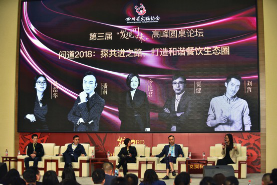 活动最后,也是第三届“发现川味”的压轴环节——问道2018高峰论坛。本次论坛围绕“探共进之路,打造和谐餐饮生态圈”这一主题展开讨论,冷门战略培训开创者、导师孙绍华;四川小师兄餐饮股份有限公司董事长潘雨;烤匠麻辣烤鱼创始人冷艳君;中国饭店协会商业地产与连锁餐饮联盟秘书长贾剑;Wefood联合创始人刘哲等五位大咖各抒己见,畅所欲言,用真知灼见 “烹调”出一场干货与创新兼备的观点盛宴。