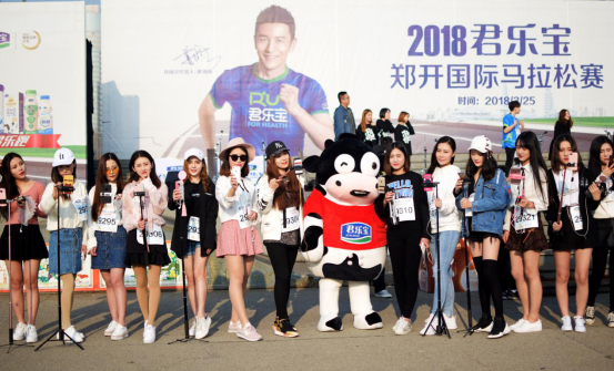 郑开国际马拉松赛作为国内最具人气的马拉松赛事之一,本届比赛设有男、女全程马拉松,五公里迷你马拉松,亲子、情侣马拉松等多个项目。比赛现场,君乐宝为赛事提供了开啡尔、芝士酸奶、君畅、每日活菌等深受消费者喜爱的明星产品,获得了大赛组委会与跑友的一致认可。