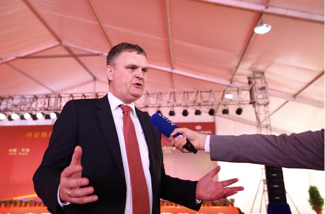 丹麦驻中国大使馆商务公使衔参赞林朗先生(Mr. Jakob Linulf)提到:“丹麦皇冠集团确实是丹麦的一枚皇冠。作为一个历史悠久,闻名丹麦的企业,丹麦皇冠代表了丹麦的理念、文化以及现代商业价值。我们很高兴看到丹麦最著名的企业在这座美丽的城市扎根。我坚信这一伟大的成就将给双方带来巨大的机遇。”(上图为林朗先生致辞)