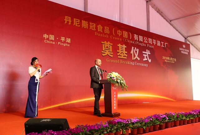 丹麦皇冠集团是全球化的肉类生产商并在行业中处于全球领先地位。是世界上最大的猪肉出口商,同时也是欧洲最大的肉类加工企业。集团由丹麦农民合作社于1887年建立,历史悠久,在全球各地消费者餐桌上占有一席之地。丹麦以生产高品质肉类而闻名全球,并以严格的食品安全标准为荣。丹麦皇冠集团猪肉事业部执行副总裁索伦·埃里可森(Mr. Soeren Eriksen)在致辞中表示“我们坐落在平湖的新工厂将延续丹麦国内的食品安全标准和技术设备,给中国消费者带来安全、高质量的肉类产品。”(上图为索伦·埃里可森先生致辞)