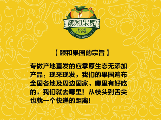 颐和果园是有机生态农业,打造绿色无公害水果,上百亩有机农田,绿色健康,产品生长过程不添加任何化学用品,让消费者吃到最新鲜美味,绿色健康的水果。 颐和果园是以绿色健康为理念,新鲜美味为宗旨,从枝头到舌尖只有一条信息的距离,保证所有水果均为现摘现发货,不催熟,不泡药,没有冻库货,不管是老人小孩还是孕妇都可以放心食用。