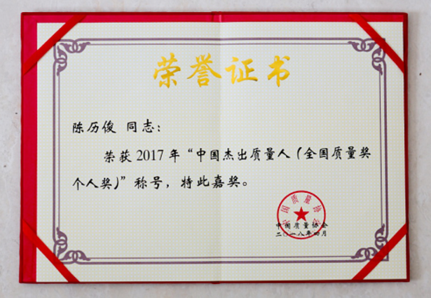 2018年4月12日,2017年度全国质量奖个人奖颁奖典礼在北京举行,大会对荣获2017年度“中国杰出质量人”、“中国质量工匠”的获奖者予以表彰。凭借多年来对产品质量“始终如一”的坚守和卓越追求,北京三元食品股份有限公司总经理陈历俊荣膺“中国杰出质量人”奖,成为乳制品行业唯一获奖者。