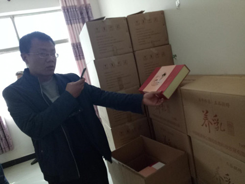 稽查人员在现场查封养乳口服液产品