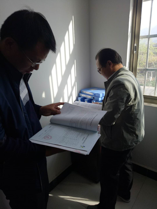 稽查人员在现场翻看资料