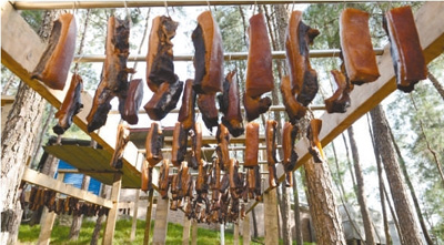 图为晾晒的腊肉。