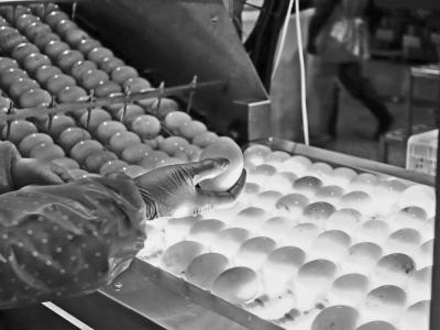 核心提示:4月16日,在江苏扬州高邮市,江苏高邮鸭集团的工人在灯检鸭蛋。高邮鸭蛋是江苏高邮特色农业名片。近年来,当地在良种繁育、生态