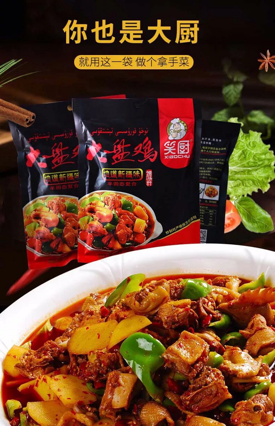 精心打造新疆美食近三十年的笑厨,在经过不断的探索和创新之后,终于将“新疆大盘鸡”装进了口袋里,推出了全新的“新疆大盘鸡调料”!