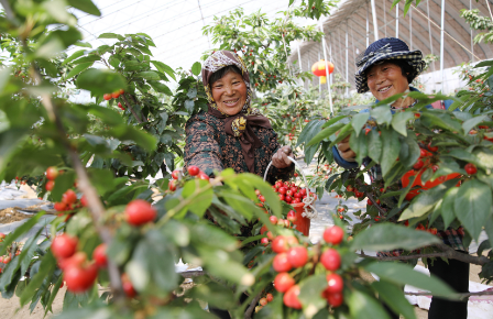 五一节临近,江苏省连云港市赣榆区大棚樱桃陆续成熟,赶“节”抢鲜上市。近年来,赣榆区立足生态环境优势,引导农民种植大棚樱桃、蓝莓、猕猴桃等错季瓜果,盘活了城郊农业观光旅游采摘经济。目前当地大樱桃栽植面积已达1万多亩,每亩年纯收入可达3万多元.司伟 张艳