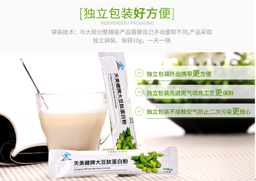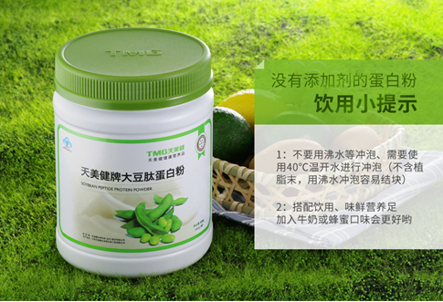 天美健大豆肽蛋白粉是一款优质的蛋白粉,主要原料为大豆分离蛋白、脱脂大豆蛋白粉、大豆低聚肽。专为免疫力低下者而设。而且它还被称之为三好蛋白粉。