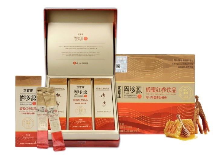 恩珍源红参饮品,精选清净长白山5年根人参为原料,沿用韩国高丽参品牌正官庄的百年红参炮制技术,结合现代先进生产工艺研制而成。不仅有参味浓郁的原味红参饮品,更有添加清甜椴蜜的椴蜜红参饮品,中和了红参的苦涩,口感更佳宜人。