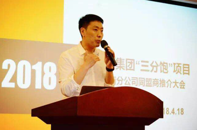 推介会现场,煌天国际总经理李盟向到场的同盟商们着重解读了具有外卖属性的三分饱项目,即三分饱烩烧饭,并指出2018年总部S2B模式下的营运工作重点,从各个方面分析总结消费升级变革中三分饱的发展之道,以及如何拓展黄记煌店面外卖的边界。