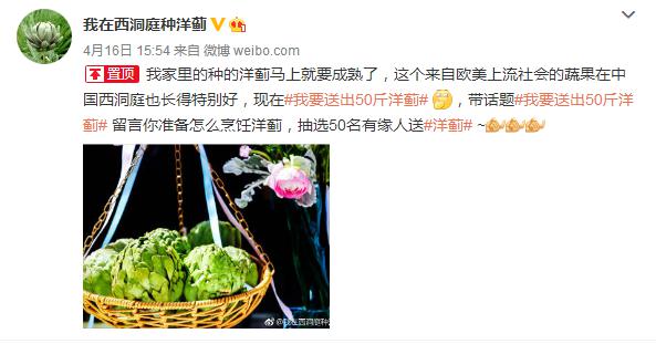 看到众网友对洋蓟的喜爱,一位@我在西洞庭种洋蓟 的农民,为分享果实成熟的喜悦,在微博上大方送出50斤洋蓟,希望更多人知道这个来自欧洲上流社会的蔬菜。此举引起网友们的一片热议,纷纷表示:原来这个叫洋蓟!爱可道洋蓟竟然在常德西洞庭就有种植基地!