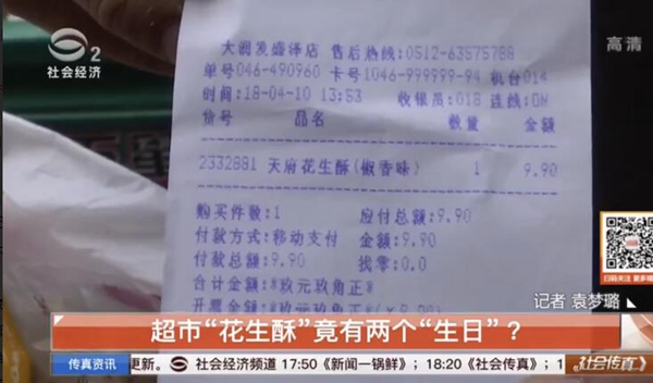 吴先生说,他和同伴在盛泽大润发超市购买的花生酥原本包装上是有一个日期的,算下来还有半年才到期,也算新鲜,可仔细一看,还有一个若隐若现、被擦拭过的日期。吴先生认为这是欺诈消费者,就把花生酥全部买下来了。