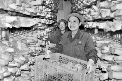 江苏省灌南现代农业示范区创建于2007年,现园区核心面积达1.2万亩,食用菌、花卉苗木、农业观光等产业蓬勃发展,年产值达50亿元,带动周边1.2万余人就业。目前,园区日产杏鲍菇、双孢菇、金针菇等菌类产品800吨,产品俏销全国26个大中城市,同时产品还出口远销欧美一些国家。图为近日员工正在采收杏鲍菇。