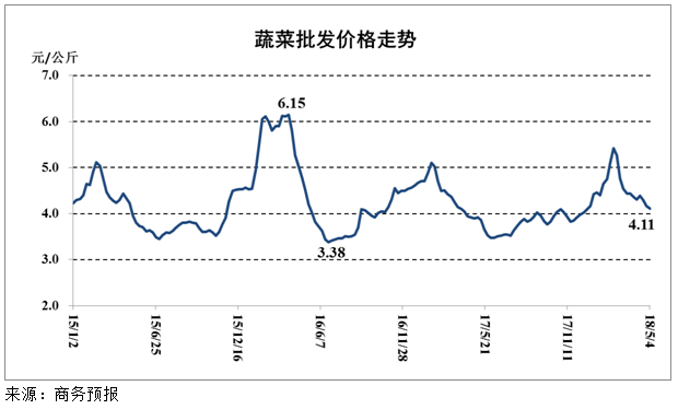 30种蔬菜平均批发价格为每公斤4.11元,比前一周下降1.4%,其中青椒、辣椒、菜花价格降幅居前,比前一周分别下降7.4%、7.3%和5.2%。
