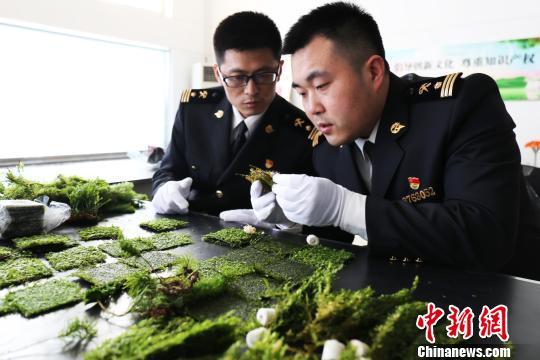 经现场初步鉴定,该批水生植物为观赏性水草,主要有地毯草、皇冠草、金鱼草和细叶水芹等,涉及8个品种,近1000株。其中部分植株携带土壤,检疫风险极高。海关工作人员依法将该批种苗予以截留,并取样品做进一步实验室检测。