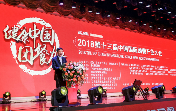 (图:中国烹饪协会会长姜俊贤为团餐产业大会致辞)