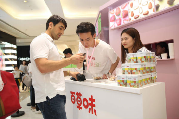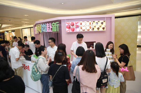 第一,花样试吃,百草味全新打造的新品——每日坚果率先亮相线下快闪店。消费者可以根据自己的喜好和口味自己选择跟酸奶还是冰激凌搭配。根据现场消费者的参与互动,记者发现,消费者喜好各有风格,对百草味的这款每日坚果也大有赞词。