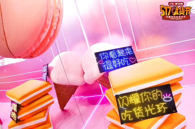 原来是517天猫吃货节举办的线下体验活动。517谐音“我要吃”,是近些年兴起的吃货的专属节日。在这样的吃货节日里,天猫为众多吃货谋福利,甄选了多种18年新奇特食品,聚焦未来食品行业的网红、新品、臻值订制品,为吃货们提供更加丰富又新颖的食品选择。作为互联网第一的零食品牌、天猫紧密的合作伙伴,三只松鼠当然是要参与其中。在517吃货节到来之际,有“零食界网红”称号的三只松鼠,也携带着满满的新品零食和诚意,与天猫一起帮助吃货们发现自己独一无二的光环。