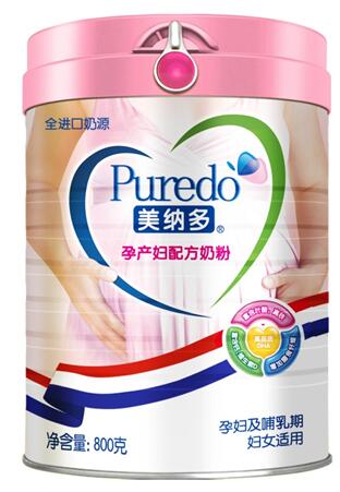在美纳多孕产妇配方奶粉的配方中,强化了孕妇所需的铁元素,每100g奶粉里含铁14.6mg,相当于64g猪肝,476g菠菜的铁含量,保障了孕妇在孕期铁的摄入量,预防孕期贫血。而且,配方中还加入了DHA、蛋白质、钙、叶酸、维生素等营养元素,为胎儿发育全面补充营养。同时,它还加入了钾、镁、锌等矿物质和水溶性维生素,能自由通过乳腺,帮助提升母乳营养,提高新生儿的哺乳品质。