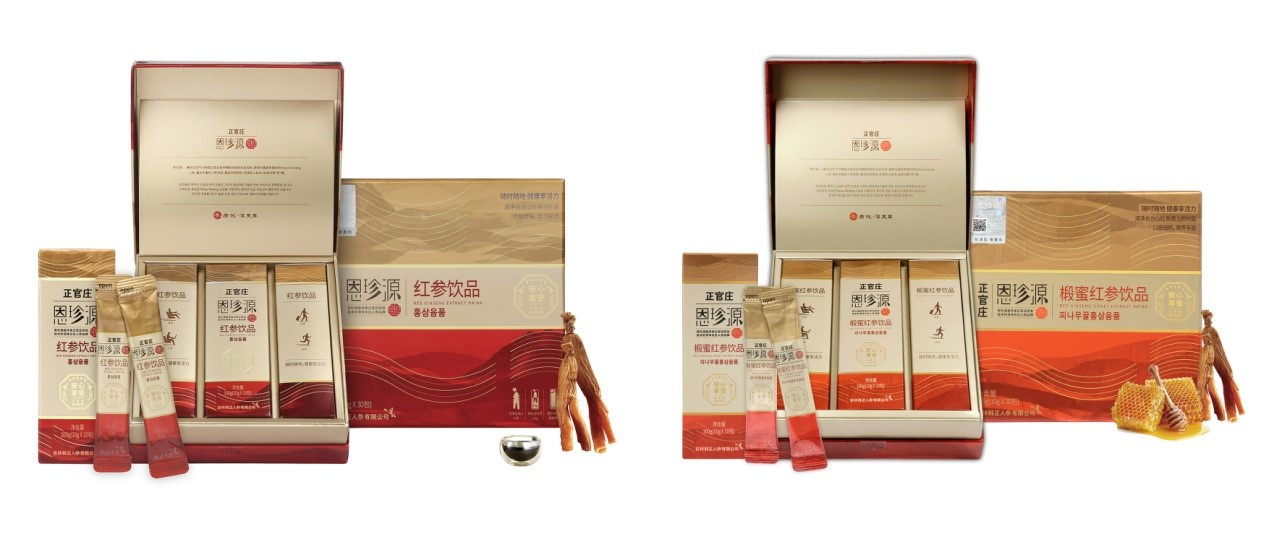 恩珍源红参饮品,精选清净长白山5年根人参为原料,沿用韩国高丽参品牌正官庄的百年红参炮制技术,结合现代先进生产工艺研制而成。不仅有参味浓郁的原味红参饮品,更有添加清甜椴蜜的椴蜜红参饮品,中和了红参的苦涩,口感更佳宜人。