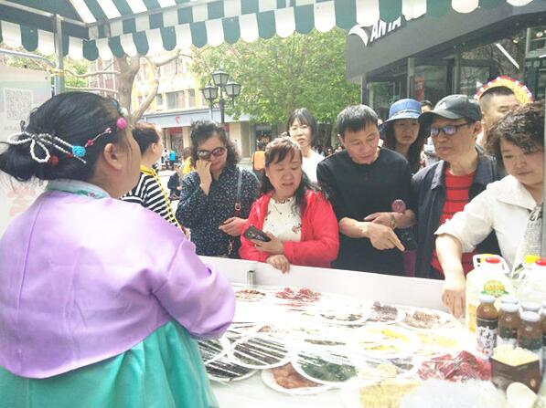 在特卖现场上,具有浓郁地方特色的野山黑猪肠、遛达鸡、土鸡蛋、打糕、凉糕、农家酱、朝鲜辣酱等农副产品吸引了广大市民纷纷驻足品尝抢购。