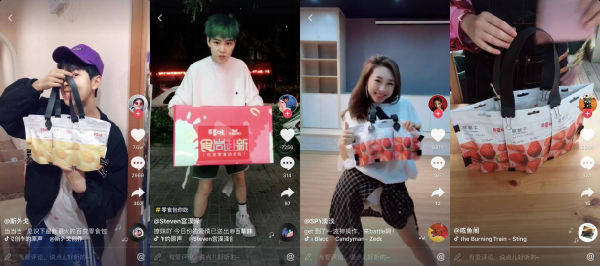 记者盘点发现,原来这是百草味发起的一场517吃货节线上玩法挑战赛,以LV、MCM等几款轻奢时尚潮流包为原型,用百草味的新装零食产品为道具,抖友们自己动手DIY潮流背包的一种互动玩法。