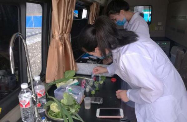 这台快速检测车外观看起来与一般车辆并无差别,但里面却大有文章。检测车内配置有纳米增强拉曼快速检测系统、超声萃取仪、涡旋振荡器、高速离心机等仪器设备,以及95余种快速检测试剂盒。该车具有可移动、检测时间短、检测精度高等特点,被称之为“可移动的检测室”。相比于传统的检测实验室更加节约时间、空间,大大提高了快检人员的工作效率。