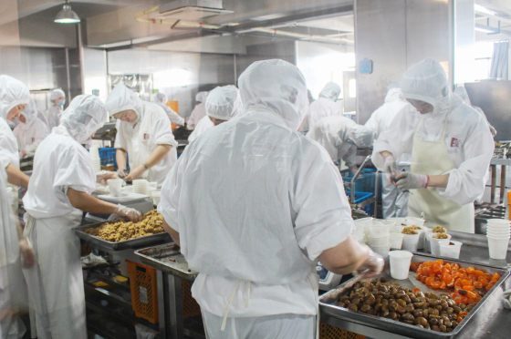 发布会开幕之前,由工作人员带领合作商、品鉴者及媒体朋友从专门的观光通道参观工厂及透明GMP粽子车间,完全公开透明的向大家展示了荃盛粽子的生产过程。在参观过程中,蒸鲜龙舟粽的手工制作环节格外引人注目,不少人对此提出疑问,去人工化的大趋势下,为什么荃盛要加入手工制作,而不将生产线全部智能化呢?荃盛工作人员表示,蒸鲜龙舟粽是今年的主打产品,为了与其他品类粽子有明显的差异,在改进原材料、制作工艺的基础上,特意加入手工制作环节,使粽子更有“人情味”,保留传统节日的氛围与文化。