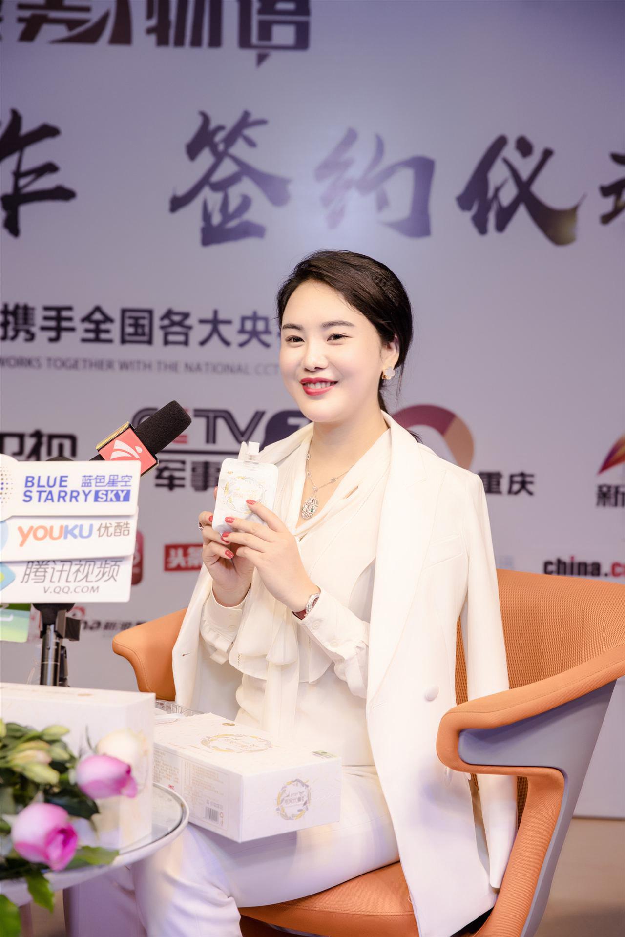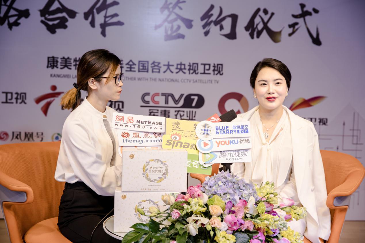 (康美物语董事长龙瑞女士在采访中展示了soso燕窝代餐,记者朋友现场试吃了产品)